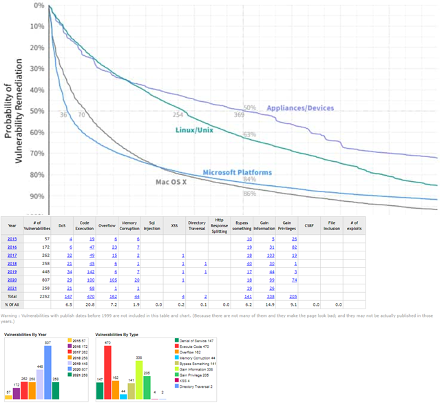En effet, pour Microsoft, toutes plateformes confondues, 84 % des vulnérabilités sont corrigées dans l’année.